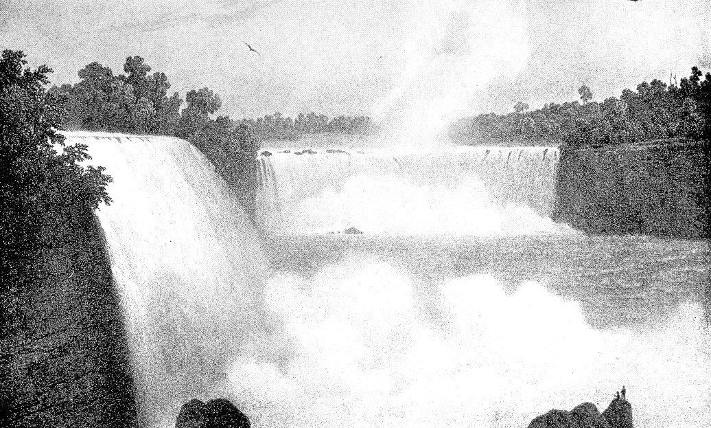 “Niagara Falls from the American Side,” from a lithograph of a sketch by J. Milbert, 1818. In Charles Mason Dow, Anthology and Bibliography of Niagara Falls, Vol. 2 (New York: J.B. Lyon Company, 1921) (390).