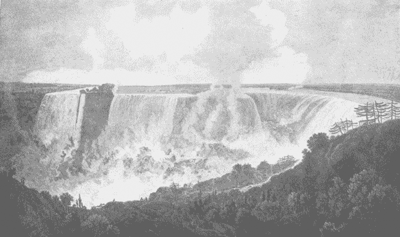 “Cataract of Niagara,” painted by Richard Wilson; engraving by William Byrne. From a drawing taken on the spot by Lt. Pierie of the Royal Artillery, 1678. In Charles Mason Dow, Anthology and Bibliography of Niagara Falls (Albany: J.B. Lyon, 1921) (1:181).